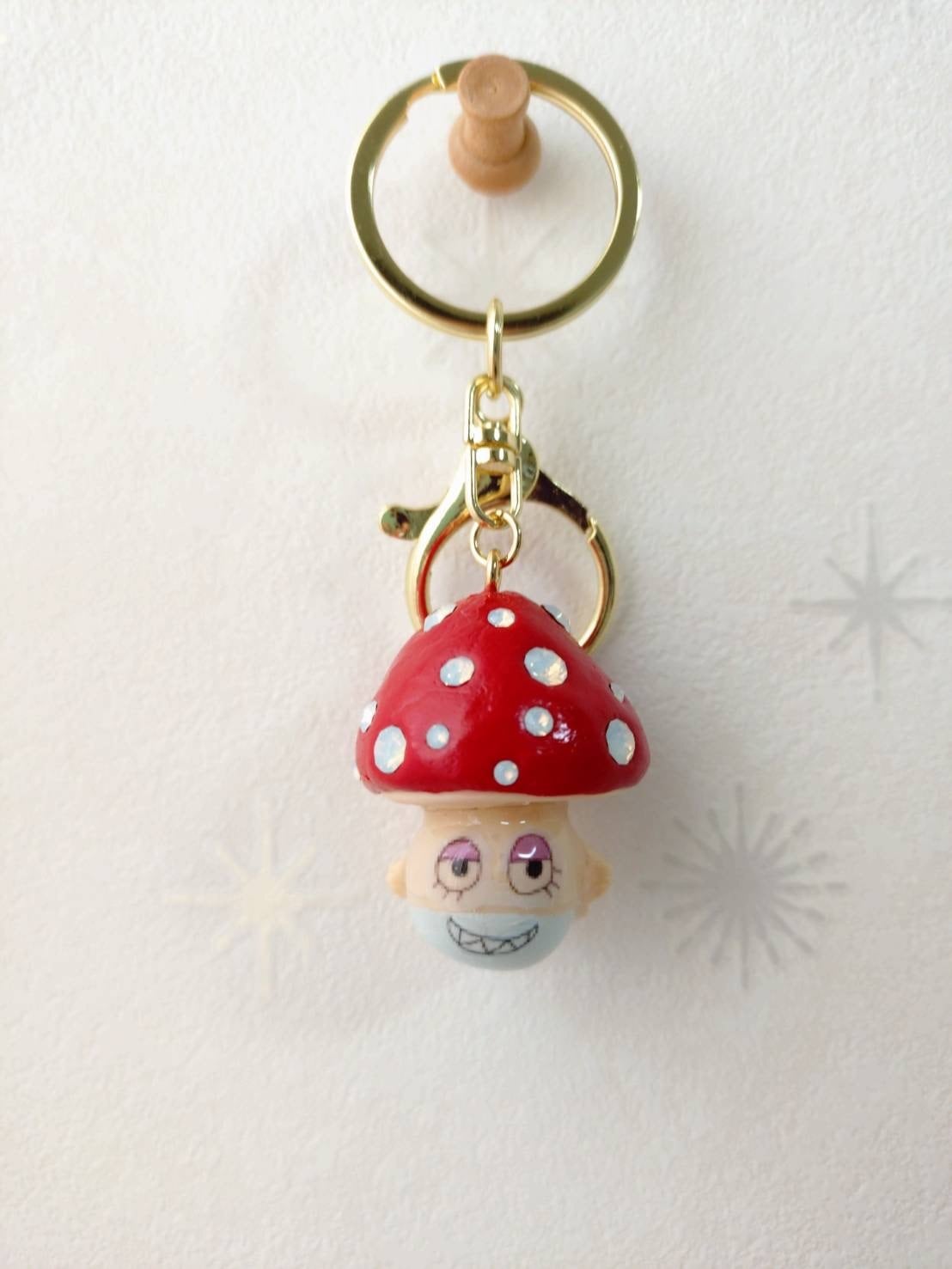 樹脂素材で、頭のドット部分にスワロフスキー社のストーンを使用しています。